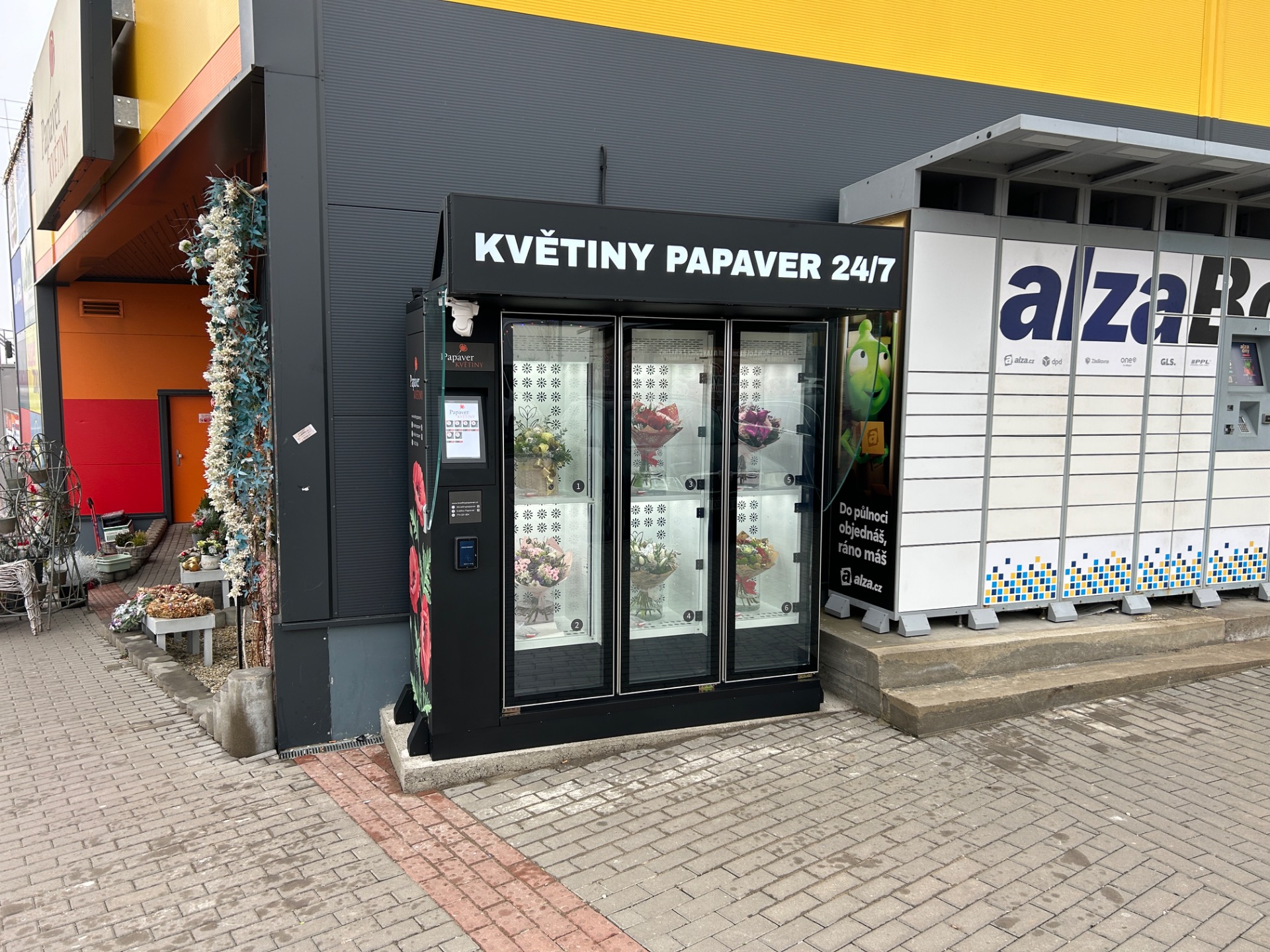 Náš květinový automat je tu pro Vás nonstop 24/7 ať už brzo ráno nebo pozdě večer a nebo kdykoliv během dne včetně svátků. Květinový automat se nachází u naší prodejny květinářství za rohem vedle alzaboxu, kde můžete i pohodlně zaparkovat.